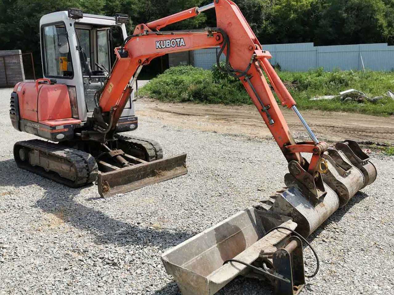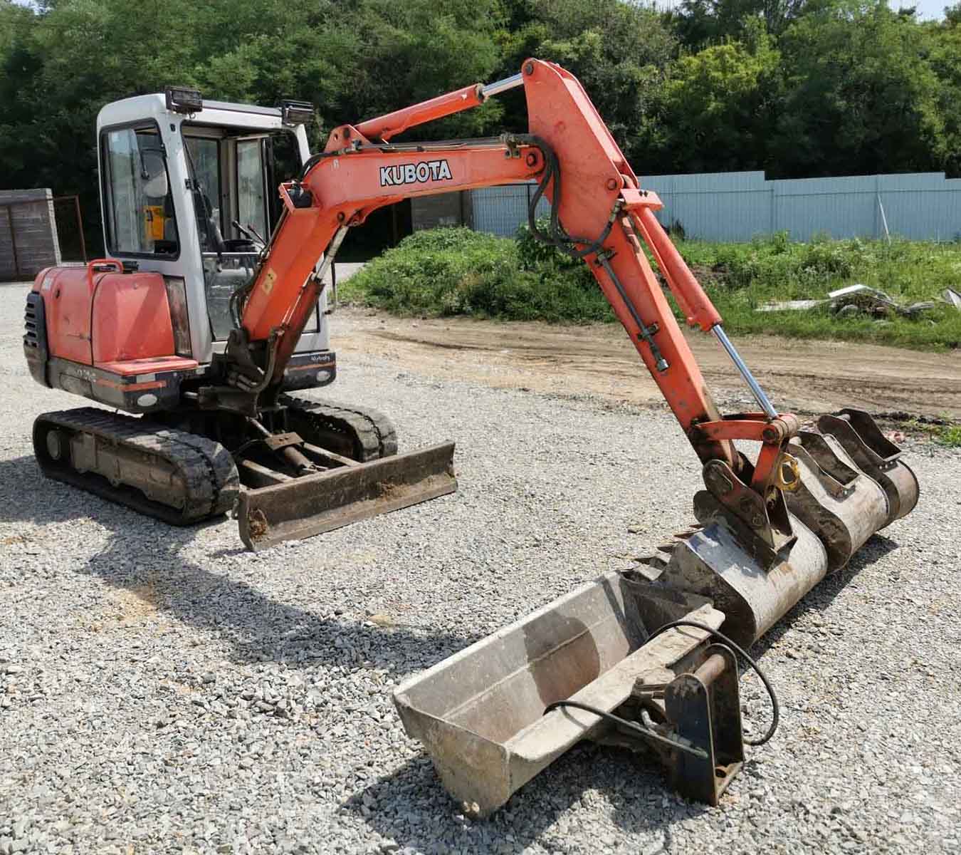 Kubota típusú gumi lánctalpas forgókotró, 3,5T tonnás. Van hozzá 30-as, 40-es, 50-es, 70-es és árokásó kanál, illetve 120cm-es rézsükanál.